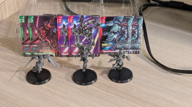 I didn’t even realize that this had dropped, and now I am on the look out for the Barbatos box as well! I was excited to see this at Just Roll It, a game store in Spring Hill Tn! I picked it up thinking I was about to score another Clan deck and I could work on building a Clan deck while on the road, however it was just a bunch of alt art cards, and a special Ex-Resource. Which is all still a plus, because now I have three more Gundams to get painted up for the October release of Gundam Assemble!