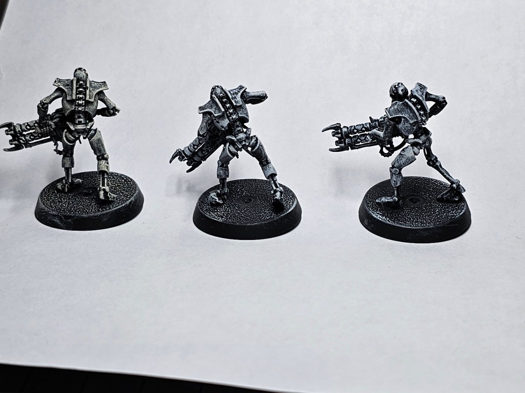 What slap chop accomplishes is a painted model with more definition to the tones of the color, as opposed to a model that was painted over a white prime. To achieve this we need to start with a black prime, after the prime we are going to dry brush a gradient from a medium gray to an almost white. The trick is to have the brightest colors all in specific areas, the brighter this is white the more vibrant the color will appear. We are just doing a pre-work out routine, so that when we put our one coat on, it looks like more than just the one.