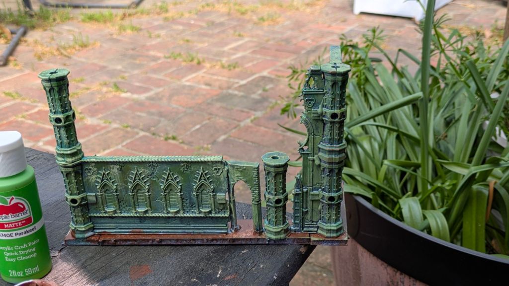 The kiddo and I started the afternoon off with painting some terrain. The dabbing is the most satisfying technique known to man, until I was showing my daughter. She told me “no daddy, I brush not dab”. It was cute, so she added some water and lava, I added the hint of radioactivity on the top of the hill!